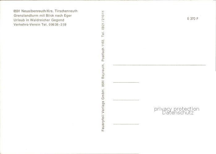 72608367 Neualbenreuth Grenzlandturm Blick nach Eger Tirschenreuth postalisch nicht gelaufen Erhaltung siehe scans [AndreD76] KatCode: 11110009377142