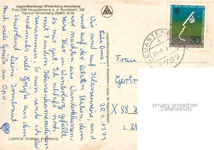 72802781 alte Postkarte Neuastenberg Jugendherberge postalisch gelaufen Erhaltung siehe scans [FriedD77] KatCode: 11110005958048