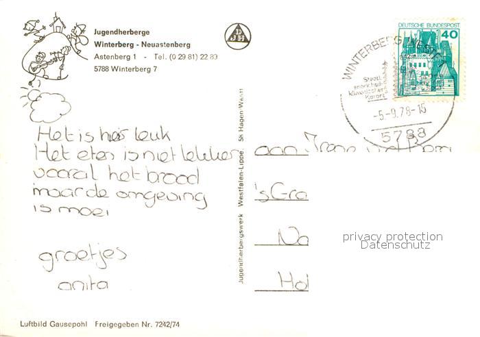 72935697 alte Postkarte Neuastenberg Jugendherberge Fliegeraufnahme postalisch gelaufen Erhaltung siehe scans [FriedD77] KatCode: 11110005958048