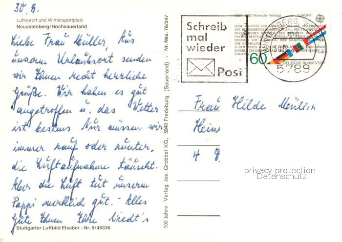 73721373 alte Postkarte Neuastenberg Luftkurort und Wintersportplatz postalisch gelaufen Fliegeraufnahme Erhaltung siehe scans [FriedD77] KatCode: 11110005958048