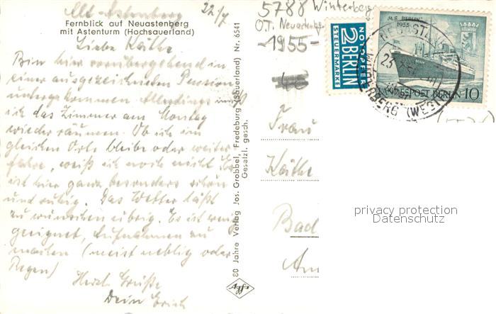 73695850 alte Postkarte Neuastenberg Panorama mit Astenturm postalisch gelaufen Erhaltung siehe scans [WerneD78] KatCode: 11110005958048