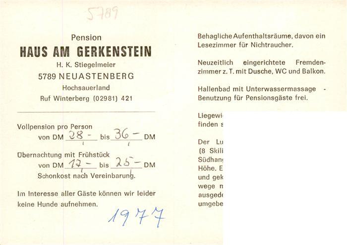 73888812 Neuastenberg Pension Haus am Gerkenstein Gaststube Zimmer Hallenbad postalisch nicht gelaufen Werbekarte (keine Postkarte) Erhaltung siehe scans [FriedD77] KatCode: 11110005958048
