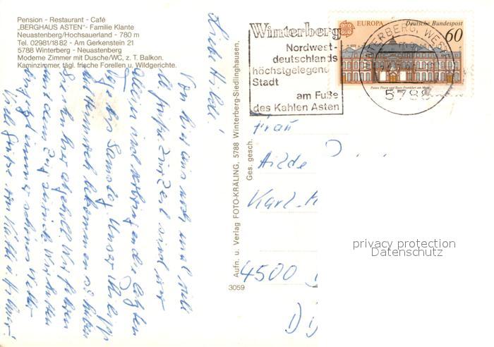 73649918 alte Postkarte Neuastenberg Pension Restaurant Cafe Berghaus Asten postalisch gelaufen Erhaltung siehe scans [FriedD77] KatCode: 11110005958048