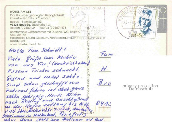 74109670 alte Postkarte Neubaeu am See Roding Bayern Hotel am See Surfer Waldspaziergang Stimmungsbild postalisch gelaufen Erhaltung siehe scans [WerneD78] KatCode: 11110009372153