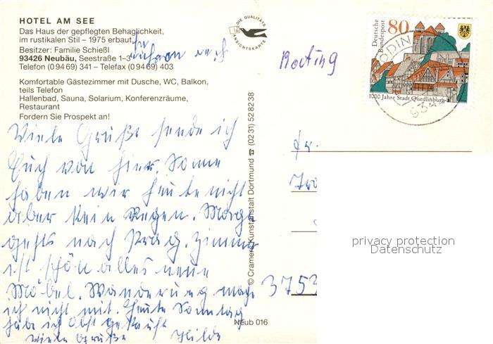 73164363 alte Postkarte Neubaeu Roding Hotel am See Windsurfen Wandern postalisch gelaufen Erhaltung siehe scans [WerneD78] KatCode: 11110009372153