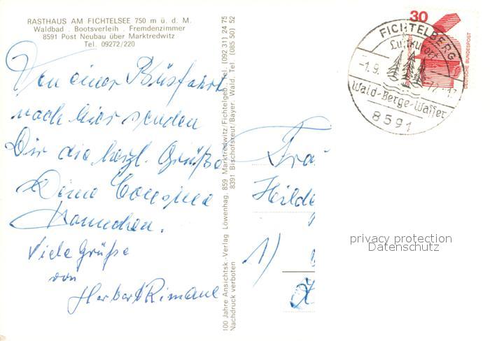 73746169 alte Postkarte Neubau Fichtelberg Rasthaus am Fichtelsee Waldbad postalisch gelaufen Erhaltung siehe scans [WerneD78] KatCode: 11110009472138