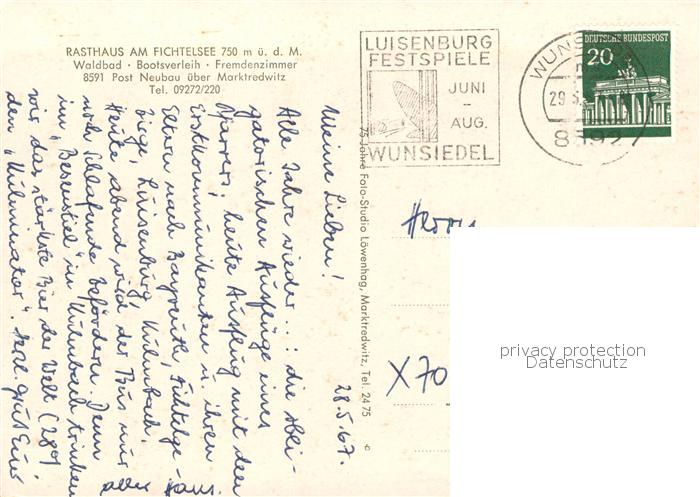 73835820 alte Postkarte Neubau Fichtelberg Rasthaus am Fichtelsee Waldbad postalisch gelaufen Erhaltung siehe scans [WerneD78] KatCode: 11110009472138