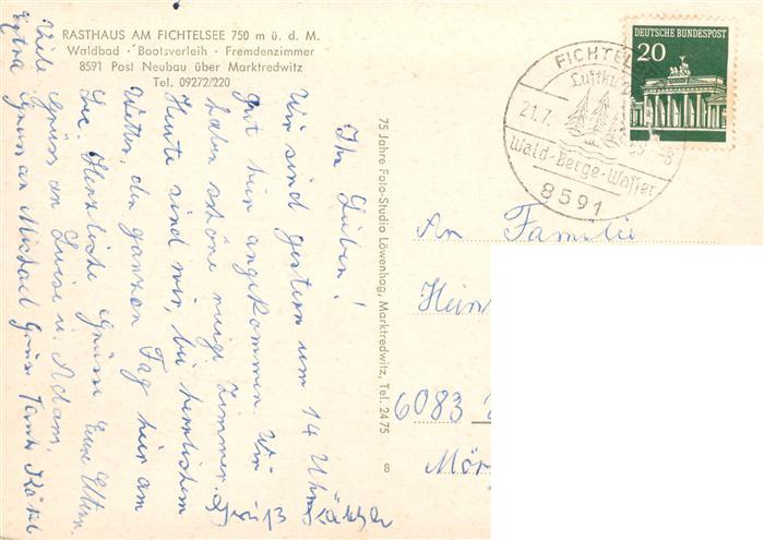 73936808 alte Postkarte Neubau Fichtelberg Rasthaus am Fichtelsee postalisch gelaufen Erhaltung siehe scans [WerneD78] KatCode: 11110009472138
