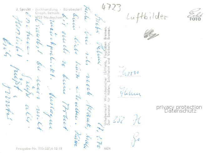 33704026 Neubeckum Fliegeraufnahmen mit Kirche und Schwimmbad postalisch nicht gelaufen Erhaltung siehe scans [WerneD78] KatCode: 11110005570008