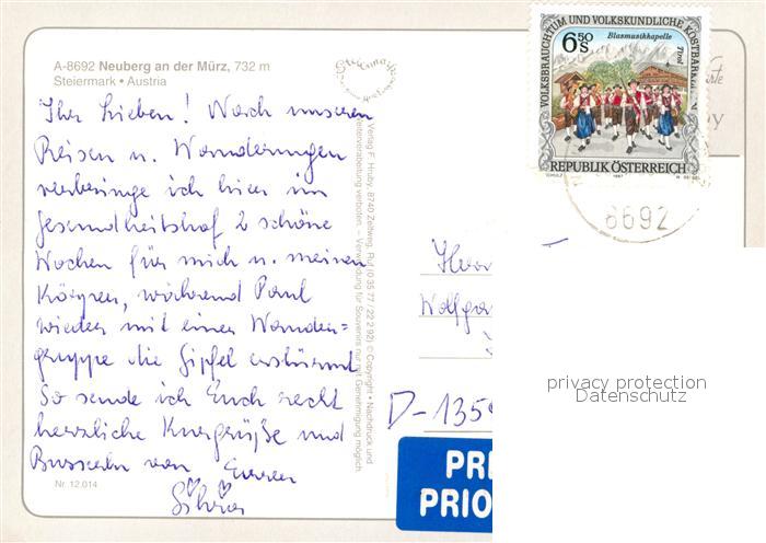 72926293 alte Postkarte Neuberg Muerz Teiansichten Kirche Landschaftspanorama postalisch gelaufen Erhaltung siehe scans [FriedD77] KatCode: 11390223061312