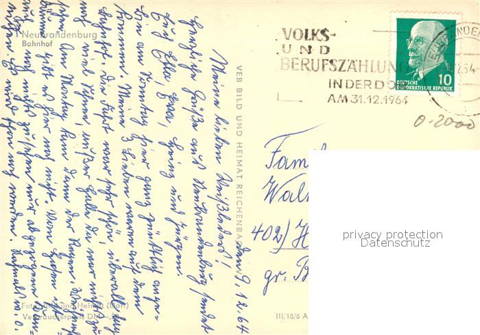 43371389 alte Postkarte Neubrandenburg Bahnhof postalisch gelaufen Erhaltung siehe scans [FriedD77] KatCode: 11110013002000