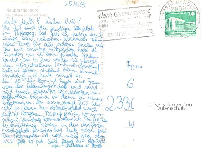 72936271 Neubrandenburg Fangelturm und Stadtmauer postalisch nicht gelaufen Erhaltung siehe scans [WerneD78] KatCode: 11110013002000