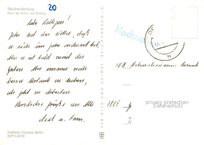 73125120 alte Postkarte Neubrandenburg Haus der Kultur und Bildung postalisch gelaufen Erhaltung siehe scans [PaolaD17] KatCode: 11110013002000