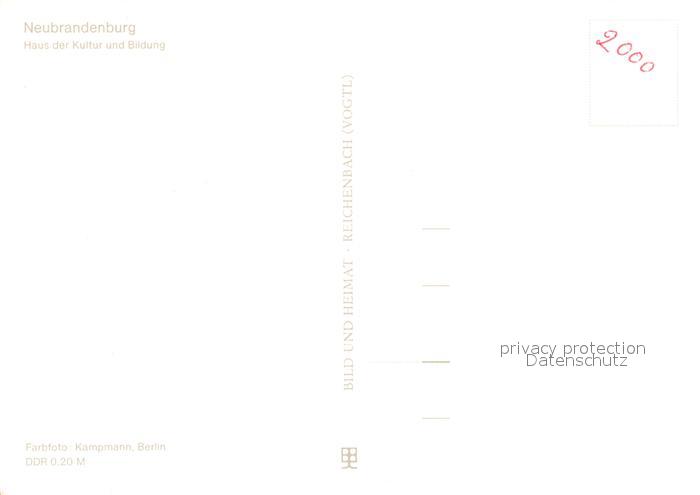 73088709 Neubrandenburg Haus der Kultur und Bildung postalisch nicht gelaufen Erhaltung siehe scans [KathaD81] KatCode: 11110013002000