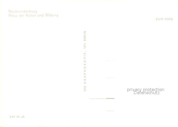 72986433 Neubrandenburg Haus der Kultur und Bildung Hochhaus postalisch nicht gelaufen Erhaltung siehe scans [FriedD77] KatCode: 11110013002000
