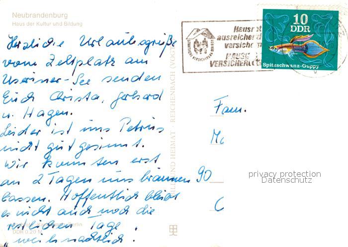 73103935 alte Postkarte Neubrandenburg Haus Kultur und Bildung postalisch gelaufen Erhaltung siehe scans [WerneD78] KatCode: 11110013002000