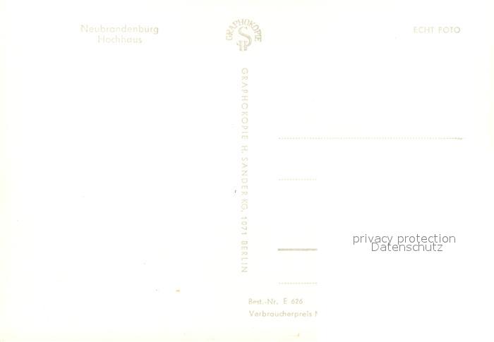 73105112 Neubrandenburg Hochhaus postalisch nicht gelaufen Erhaltung siehe scans [KathaD81] KatCode: 11110013002000