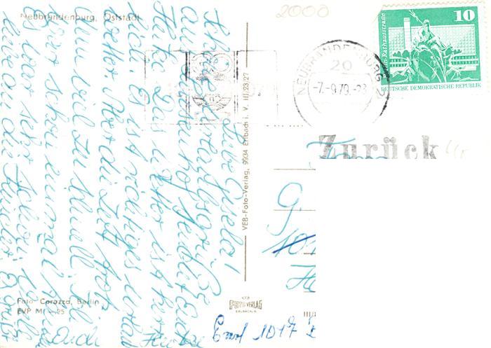 73888524 alte Postkarte Neubrandenburg Oststadt Wohnblocks Kaethe Kollwitz Schule postalisch gelaufen Erhaltung siehe scans [WerneD78] KatCode: 11110013002000