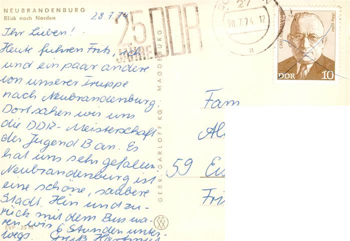 73864290 alte Postkarte Neubrandenburg Panorama Blick nach Norden postalisch gelaufen Fliegeraufnahme Erhaltung siehe scans [FriedD77] KatCode: 11110013002000