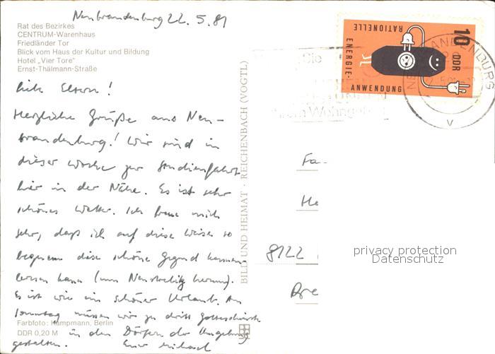 72373273 alte Postkarte Neubrandenburg Rat des Bezirkes Centrum-Warenhaus Friedlaender Tor Hotel Vier Tore postalisch gelaufen Erhaltung siehe scans KatCode: 11110013002000