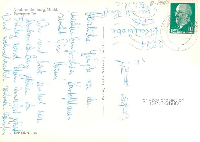 43371367 alte Postkarte Neubrandenburg Stargarder Tor postalisch gelaufen Erhaltung siehe scans [FriedD77] KatCode: 11110013002000