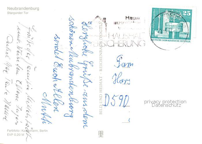 73152491 alte Postkarte Neubrandenburg Stargarder Tor postalisch gelaufen Erhaltung siehe scans [FriedD77] KatCode: 11110013002000
