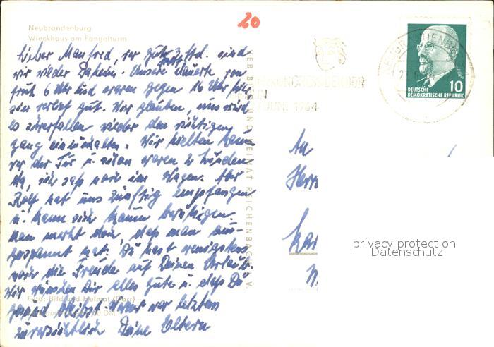 72317641 alte Postkarte Neubrandenburg Wieckhaus am Fangelturm postalisch gelaufen Erhaltung siehe scans KatCode: 11110013002000