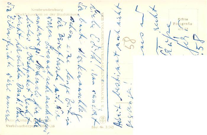 73897741 Neubrandenburg Wiekhaeuschen an der Stadtmauer postalisch nicht gelaufen Erhaltung siehe scans [WerneD78] KatCode: 11110013002000