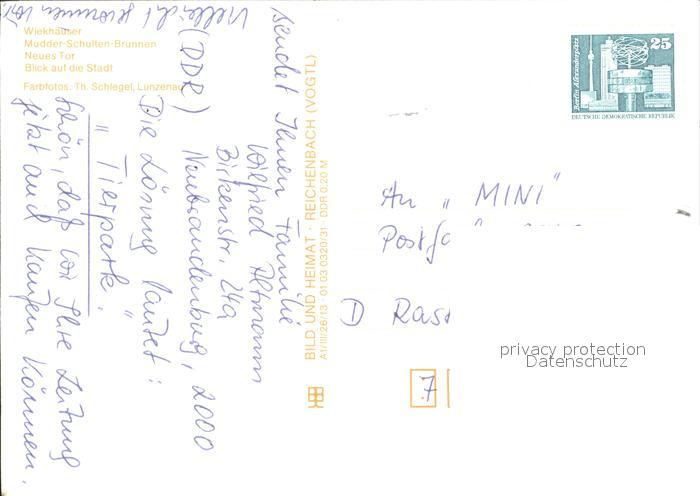 72372290 alte Postkarte Neubrandenburg Wiekhaeuser Mudder Schulten Brunnen Neues Tor Stadtbild postalisch gelaufen Erhaltung siehe scans KatCode: 11110013002000