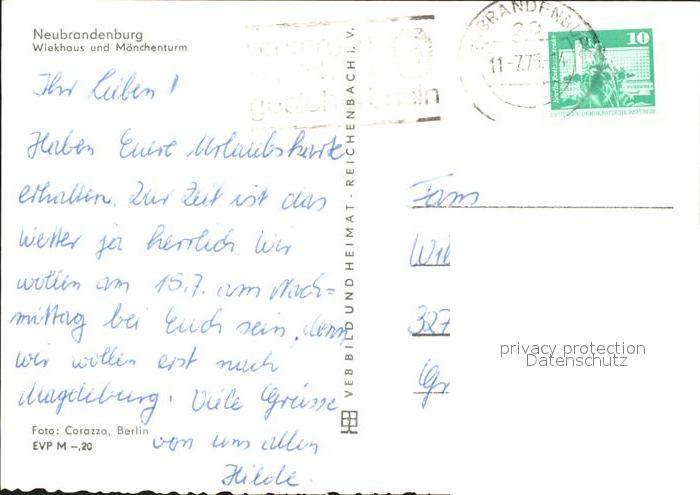 72115801 alte Postkarte Neubrandenburg Wiekhaus und Moenchturm postalisch gelaufen Erhaltung siehe scans KatCode: 11110013002000