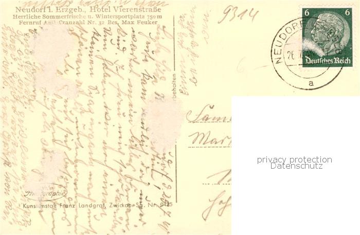 73851306 Neudorf Annaberg Hotel Vierenstrasse postalisch gelaufen Erhaltung siehe scans [FriedD77] alte Postkarte Frie Katcode 11110014171010