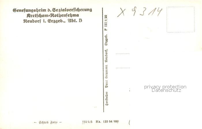 43329671 Neudorf Erzgebirge Genesungsheim der Sozialversicherung Kretscham Rothensehma postalisch nicht gelaufen Erhaltung siehe scans [FriedD77] KatCode: 11110014171240