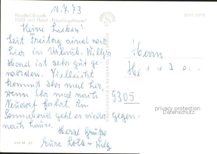 72075168 Neudorf Erzgebirge HOG Hotel Erzgebirgsklause postalisch nicht gelaufen Erhaltung siehe scans KatCode: 11110014171240