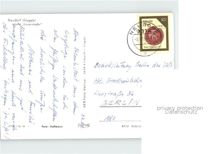 72015390 alte Postkarte Neudorf Erzgebirge Hotel Vierenstrasse postalisch gelaufen Erhaltung siehe scans KatCode: 11110014171240