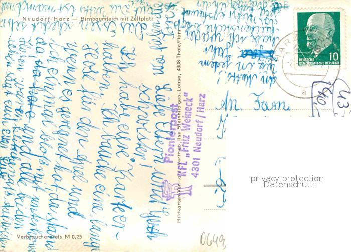 72633139 alte Postkarte Neudorf Harzgerode Birnbaumteich mit Zeltplatz postalisch gelaufen Erhaltung siehe scans [FriedD77] KatCode: 11110015085145