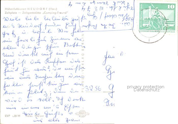 72074631 alte Postkarte Neudorf Harzgerode Camping postalisch gelaufen Erhaltung siehe scans KatCode: 11110015085145