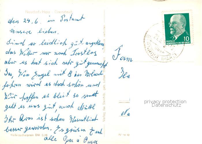 73034162 alte Postkarte Neudorf Harzgerode Grenzteich postalisch gelaufen Erhaltung siehe scans [KathaD81] KatCode: 11110015085145