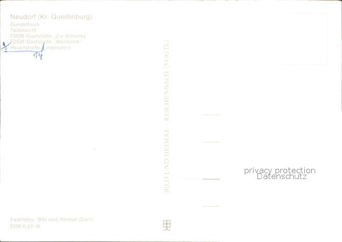 72369984 Neudorf Quedlinburg Gondelteich Teilansicht Gaststaetten Zur Schnecke Waldblick postalisch nicht gelaufen Erhaltung siehe scans KatCode: 11110015085220
