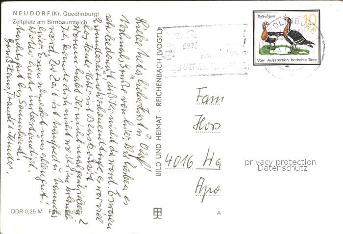 72027241 alte Postkarte Neudorf Quedlinburg Zeltplatz am Birnbaumteich postalisch gelaufen Erhaltung siehe scans KatCode: 11110015085220