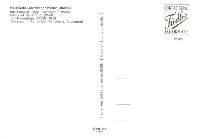 73894040 Neuenbuerg Enz Kirche Cafe Bambi Schwanner Warte Am Rotenbaechle Fernsicht auf Pfaelzer Berge und Odenwald postalisch nicht gelaufen Erhaltung siehe scans [WerneD78] KatCode: 11110008236043