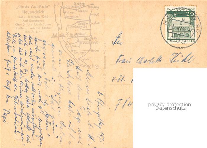 73727193 alte Postkarte Neuendeich Gasthaus Aal-Kate postalisch gelaufen Fliegeraufnahme Erhaltung siehe scans [FriedD77] KatCode: 11110001056037