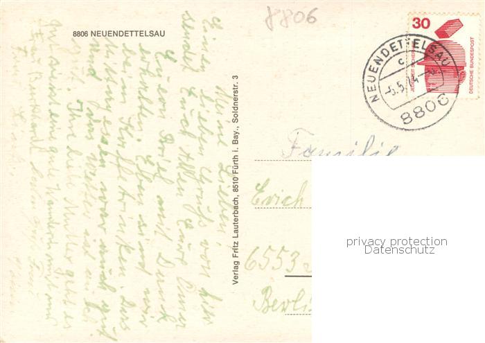 73767811 alte Postkarte Neuendettelsau Laurentiuskirche Mutterhaus Portal Schwesternhaus Schuelerinnenwohnhaus Krankenhaus Hospiz Sonnenheim Waldschwimmbad postalisch gelaufen Erhaltung siehe scans [FriedD77] KatCode: 11110009571180