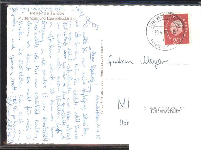 72151237 alte Postkarte Neuendettelsau Mutterhaus Laurentiuskirche postalisch gelaufen Erhaltung siehe scans KatCode: 11110009571180