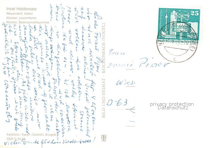 73226732 alte Postkarte Neuendorf Hiddensee Hafen Fischkutter Kloster Leuchtturm Seemannshaeuschen postalisch gelaufen Erhaltung siehe scans [FriedD77] KatCode: 11110013061017