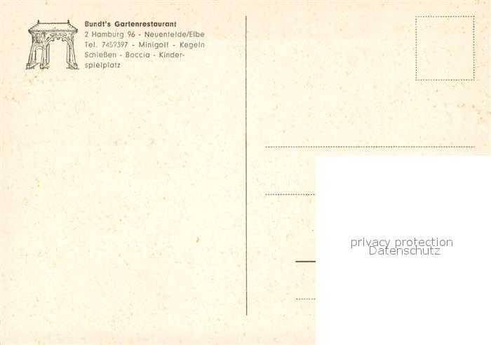 73684237 Neuenfelde Hamburg Bundts Gartenrestaurant postalisch nicht gelaufen Erhaltung siehe scans [LiesaD40] KatCode: 11110002000000