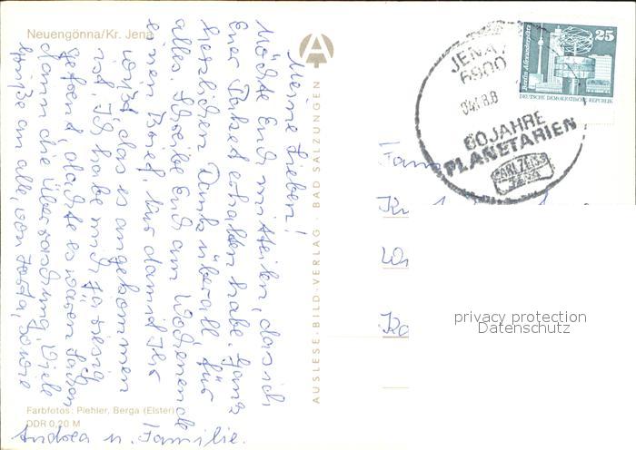 72374258 alte Postkarte Neuengoenna Naherholungszentrum Porstendorf Badesee Ferienhaeuser Gaststaette postalisch gelaufen Erhaltung siehe scans KatCode: 11110016074063