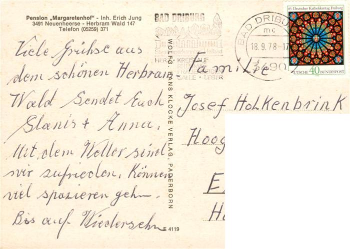 73924254 alte Postkarte Neuenheerse Pension Margaretenhof Herbram Wald Gartenseite Aufenthalts und Clubraum Speiseraum Gaestezimmer postalisch gelaufen Erhaltung siehe scans [FriedD77] KatCode: 11110005762004