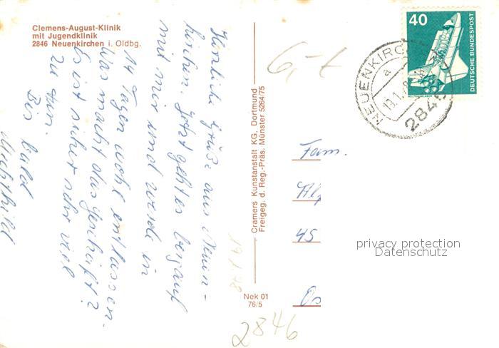 73643291 alte Postkarte Neuenkirchen Oldenburg Clemens August Klinik mit Jugendklinik Fliegeraufnahme postalisch gelaufen Erhaltung siehe scans [WerneD78] KatCode: 11110003460007