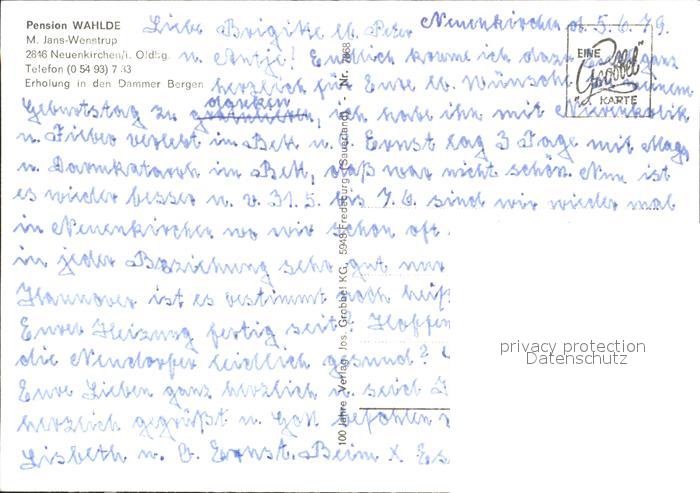 72370341 Neuenkirchen Oldenburg Pension Wahlde Erholung Dammer Berge postalisch nicht gelaufen Erhaltung siehe scans KatCode: 11110003460007