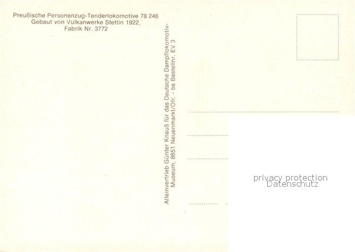 73233948 Neuenmarkt Deutsches Dampflokomotiv Museum Preussische Lok 78 postalisch nicht gelaufen Erhaltung siehe scans [KathaD81] KatCode: 11110009477143